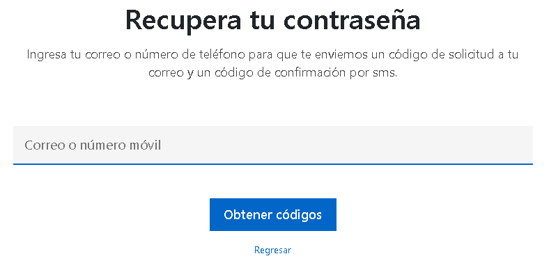 Al correo electrónico, llegará un link, en el cuál hará clic para proceder al cambio de contraseña, el número de teléfono móvil registrado, llegará un código de validación que se pedirá al momento de cambio de contraseña.