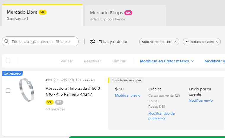 - Se dirige a su portal de venta (mercadolibre) y podrá vizualizar la publicación activa.